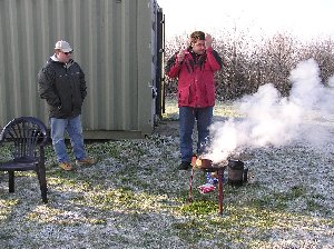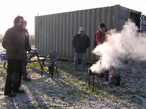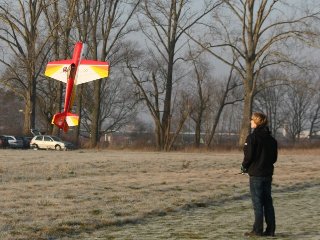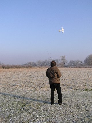 ![]() | Der Blick aus dem Fenster morgens um halb 10 in Deutschland versprach allerbeste Flugbedingungen. Wir hatten Hochdruckwetter: Praktisch keinen Wind, klaren Himmel und leichten Frost. Die gegenläufigen Abgasschwaden sind tatsächlich so beobachtet. . Was will man also mehr, als die Gelegenheit trotz gefrohrenem Bodens zu nutzen... |