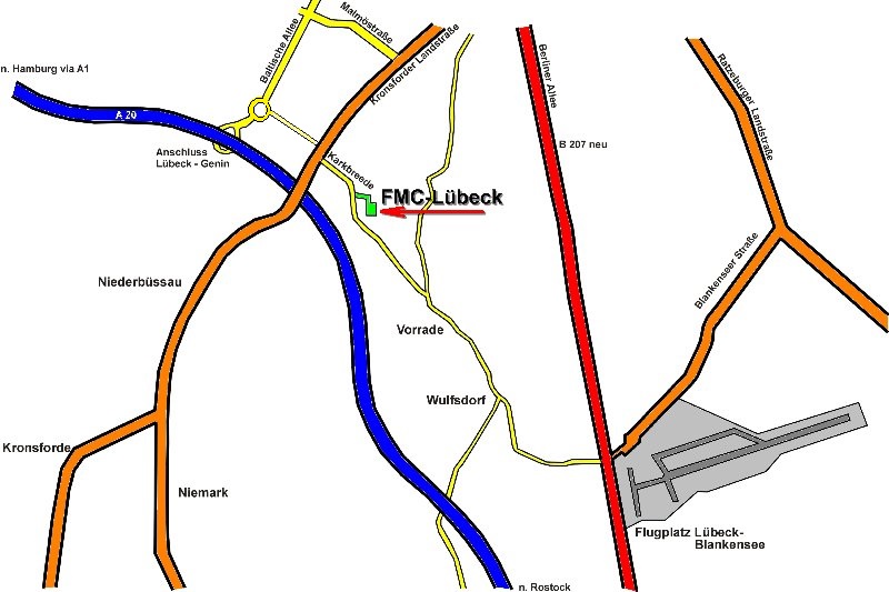 Der Modellflugplatz liegt im Süden von Lübeck an der Karkbrede. Er ist in Stadtnähe und gut über die Kronsforder Landstraße zu erreichen. Die Anfahrtskizze macht es deutlich.