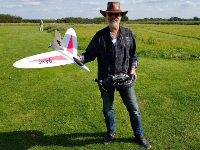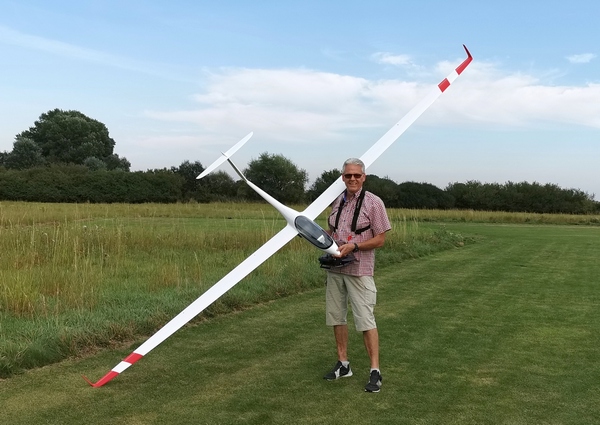 August 2019: Gerd bringt seinen "Delphin" von Aer-O-Tec erstmalig auf den Platz