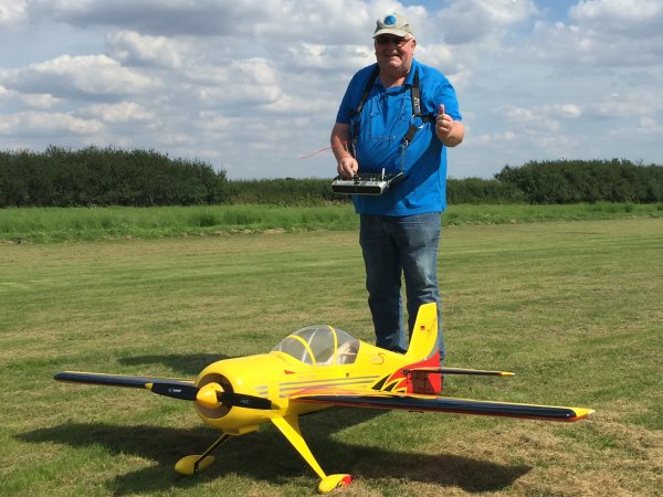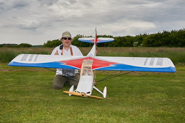 02. Juli 2019: Thomas zeigt sein neues Modell erstmals auf dem Flugplatz: