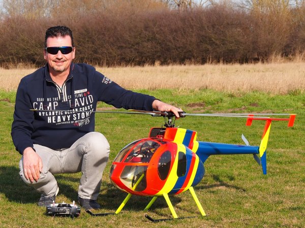 Im Oktober 2015 als leeres Modell vom Kumpel günstig übernommen und dann aufgebaut. Ursprünglich als Verbrennermodell konzipiert, ging der Akkuwechsel nur über die Demontage der Tragfläche, habe dann die Haube umgebaut und etwas vom Rumpf ausgeschnitten, jetzt geht der Akkuwechsel leicht über die Cockpithaube.