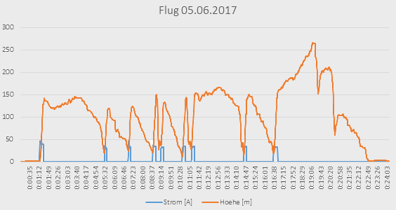 Steigrate mit Motor liegt gerne zwischen 10 und 20 m/s. Stromaufnahme dann bei ca. 30A bis 35A.