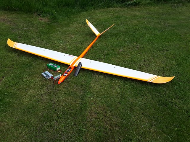 F5J vom Feinsten mit 4m Spannweite bei knapp 1,3Kg Abfluggewicht. Hier weitere Daten: https://mahmoudi-modellsport.eu/plusx