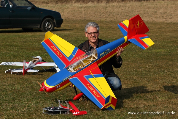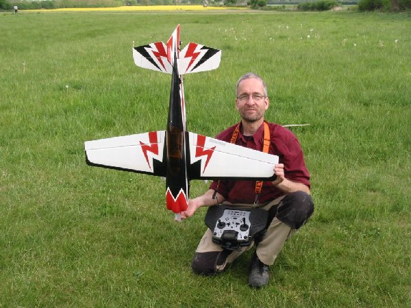 Nach Fertigstellung wurde er von Sebastian eingeflogen, dabei zeigte dieser, dass auch Kunstflugfiguren damit möglich sind und wie!