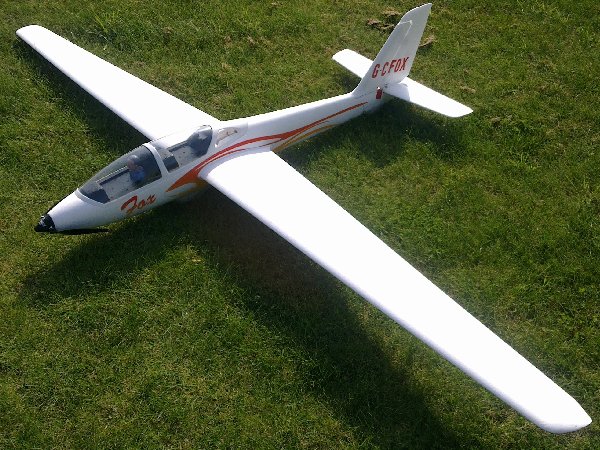 Einsteiger F3B Trainingsmodell, voll GFK/CFK, dreiteilige Vierklappen-Fläche, V-Leitwerk, Rumpf: GE