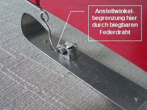 Das Blech hinter der Befestigung dient dazu, den Anstellwinkel der Kufe während des Fluges zu begrenzen. Alle Kufen wurden vor dem eigenen Schwerpunkt aufgehängt, so, dass sie auswehen können.