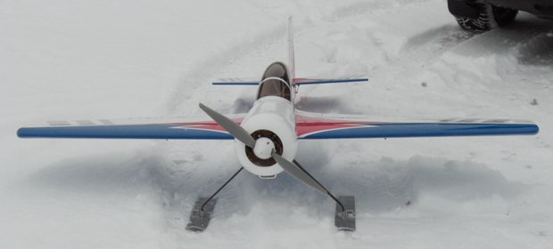 Wie man im Film sehen kann, reicht die Größe für ca. 3kg schwere Modelle aus. Das Modell lässt sich gut lenken. Die Flugeigenschaften sind unproblematisch. Landen klappt einwandfrei. Unebenheiten, wie z.B. Fußspuren im Schnee oder festgetretene Flächen waren problemlos überfahrbar. Das Ganze wiegt ca. 160g.