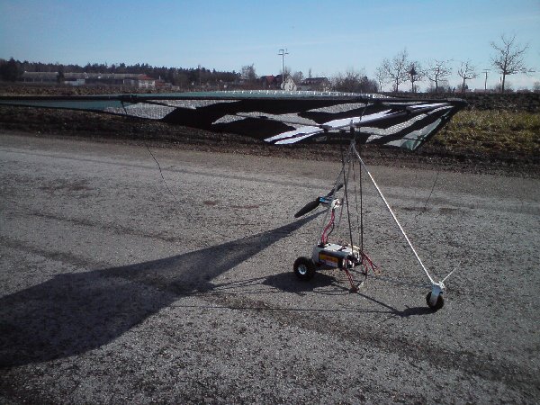 Leider war für das kleine Modell der Tag mit 9-10kn zu windig, dass präzises Einfliegen sehr erschwert war. Das Modell ist heil geblieben, so dass in Kürze ein neuer Versuch erfolgen kann.