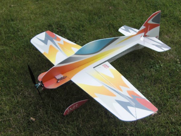 Gewicht 155g. Regler: Diamond 10A, Empfänger: Futaba RX600 DSP, Motor: Roxxy 1820-12, Akku: Select ENERGY 2S 360mAh; Dauer 25C Burst 50C; Prop.: GWS 8X4,3.